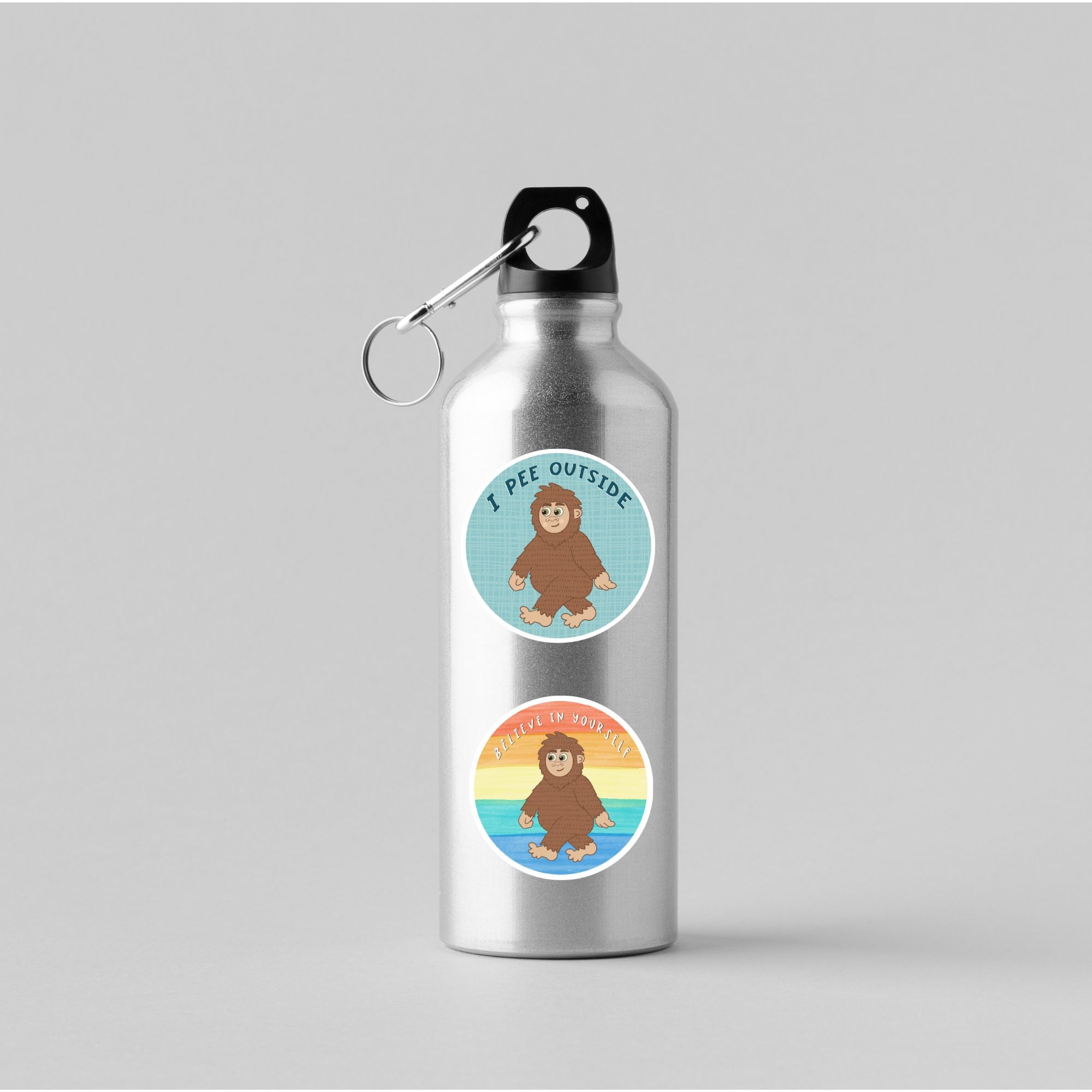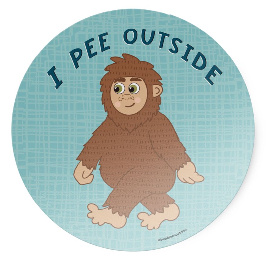 Bring a touch of whimsy to your outdoor adventures with our adorable Bigfoot sticker! This humorous die-cut vinyl sticker features a cute hand-drawn Big Foot with the blue words, "I Pee Outside" on a light blue background. Perfect for hikers, mountain explorers, and nature lovers, this cute Sasquatch sticker is a fun way to personalize your water bottle, laptop or vehicle to celebrate your love of the great outdoors and the elusive but lovable mythical creature.