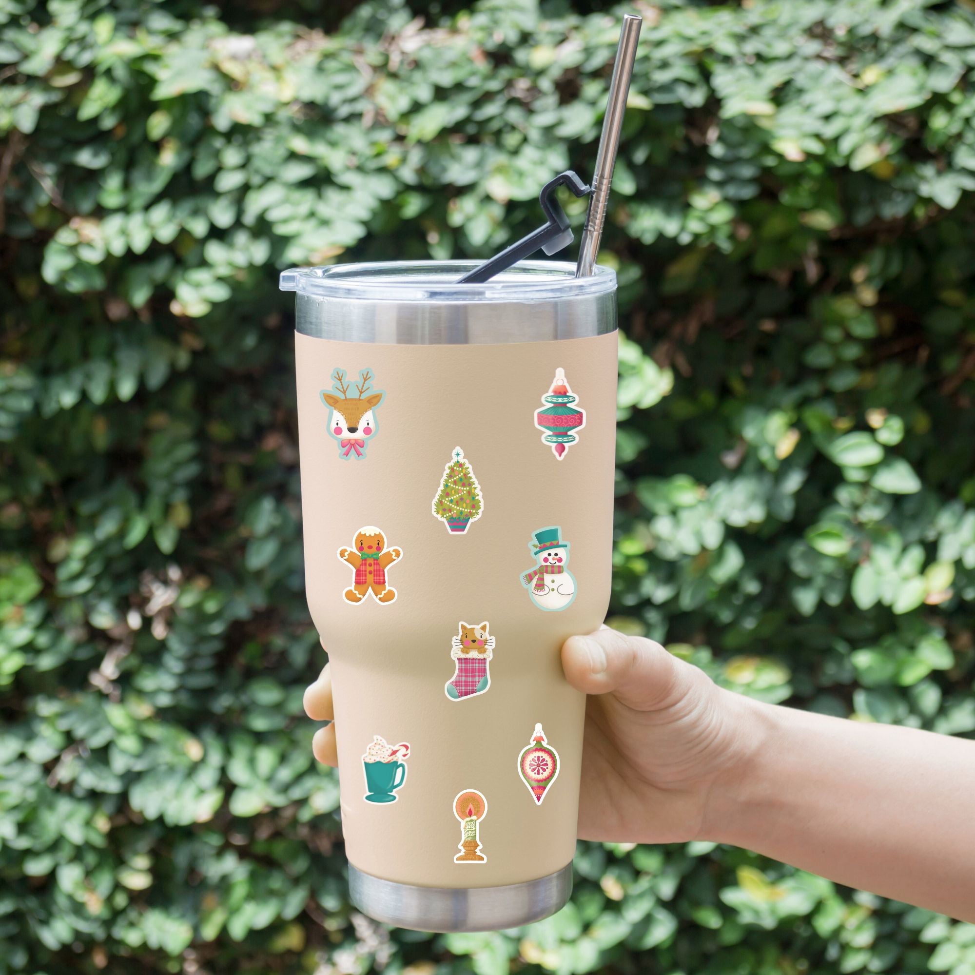 New for Christmas 2025! Add a touch of whimsy to your paper goods with these festive Christmas Holiday Sticker Flakes. This mini sticker pack features 20 tiny matte vinyl stickers with hand-drawn Christmas / holiday illustrations that include snowman, gingerbread boy, reindeer, cat in a stocking, candles, ornaments, Xmas tree, and mug of hot cocoa. Throw some sticker confetti in a greeting card, use them to seal envelopes, use as stocking stuffers, or decorate gift tags and packages! Waterproof, weatherproof, and UV-resistant, these mini stickers are both cute and durable.