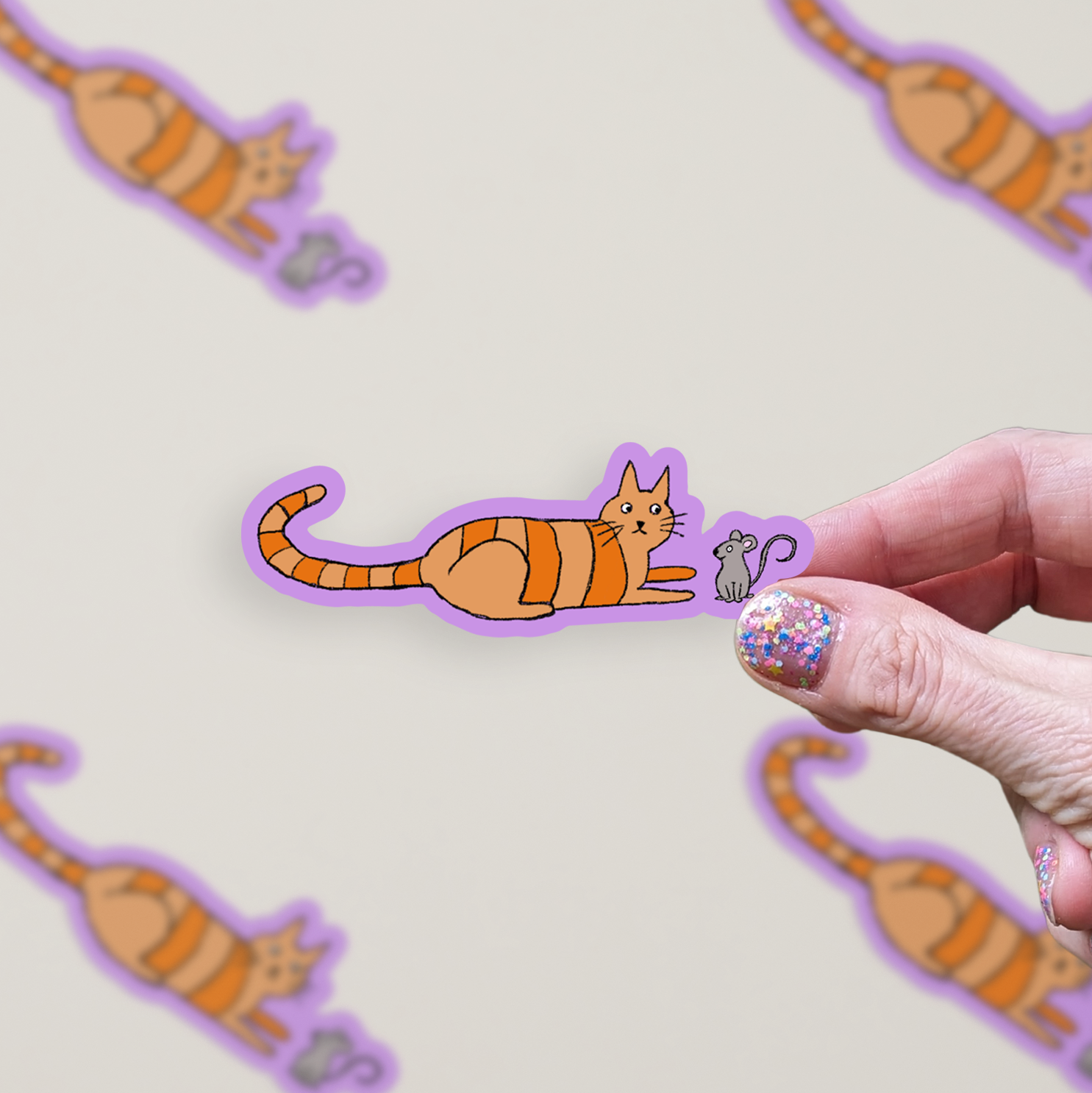 Doodle Cat & Mouse Vinyl Sticker